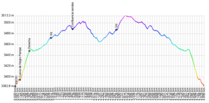 Aproximadamente medio kilómetro después de iniciar el retorno por detrás, la senda se acerca a una casa y comienza a alejarse de las rocas: se dejó entonces el sendero más marcado, tomando unos menor que comienza a subir entre las rocas, (waypoint izq). Se asciende cerca de medio kilómetro más hasta alcanzar nuevamente el filo del cerro y las formaciones rocosas iniciales por el costado opuesto al que se recorrió anteriormente.