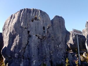 Tras estás formaciones se comenzó a retornar por la parte posterior del “Bosque de Piedras”, donde se encuentra el denominado “Mamut”, imagen que tiene otra muy semejante en la parte alta que se visitó inicialmente. Se sigue por un sendero pequeño, nuevamente siempre al borde de las caprichosas y peculiares figuras.